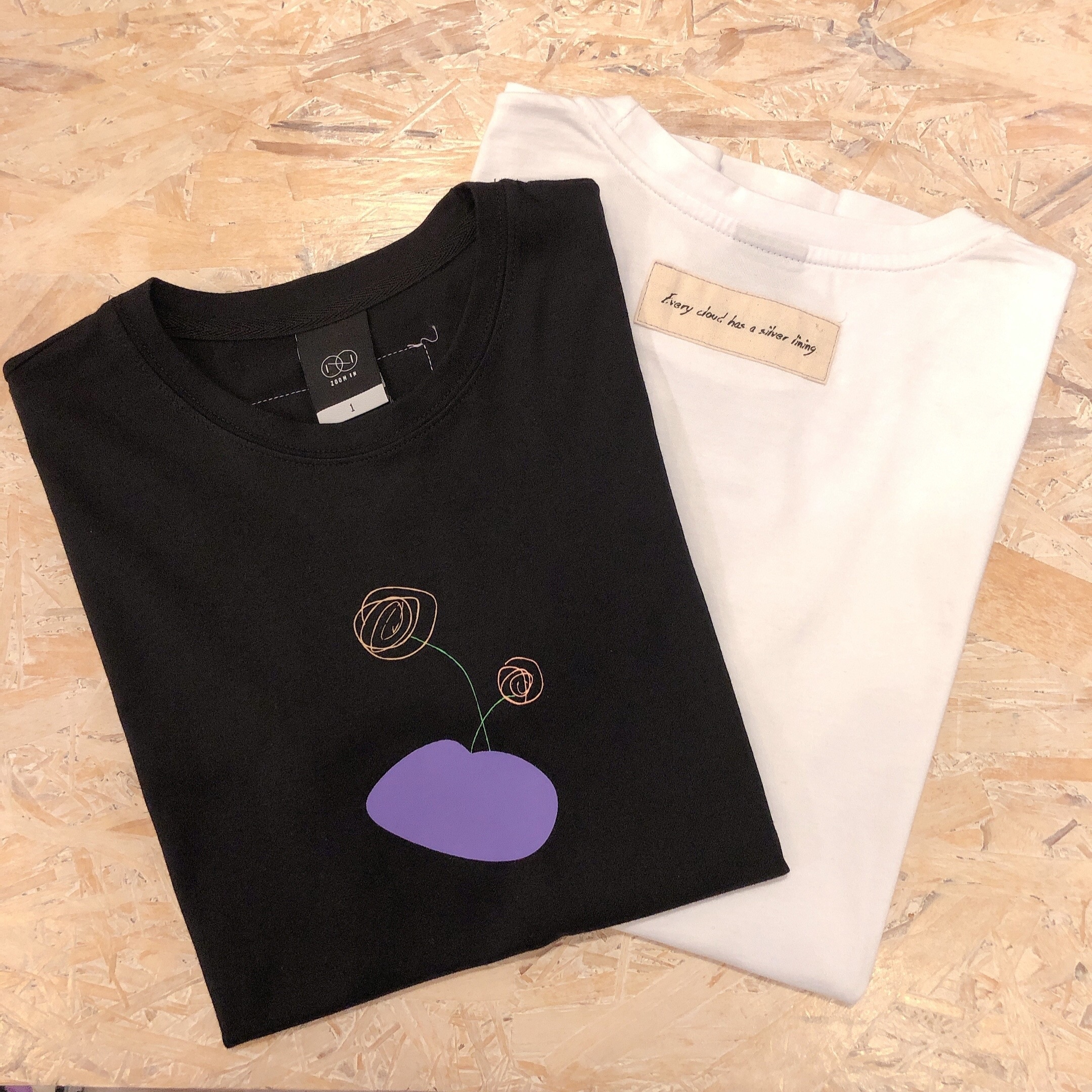 Zoom in goods 「石中花手繪棉質 t-shirt」黑色