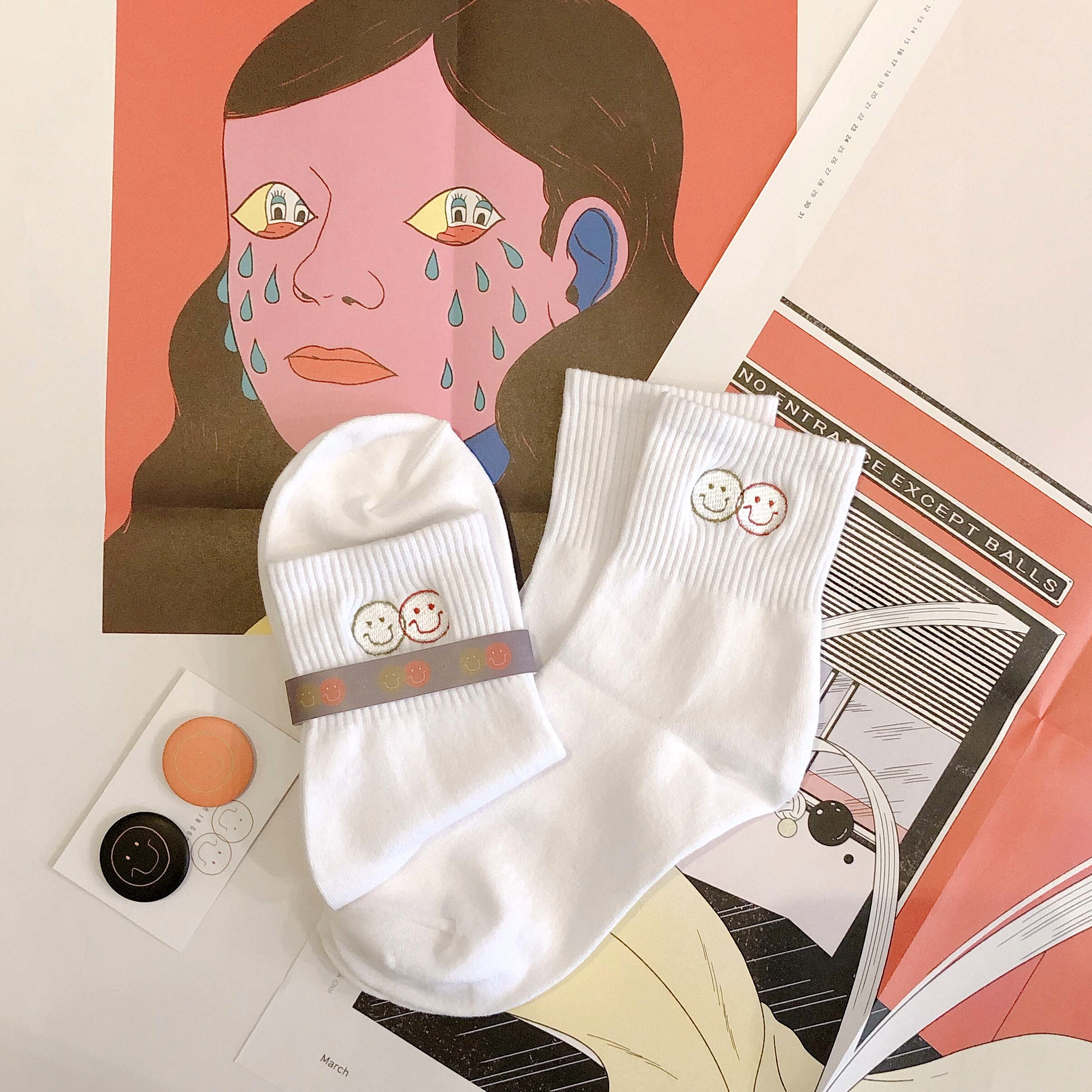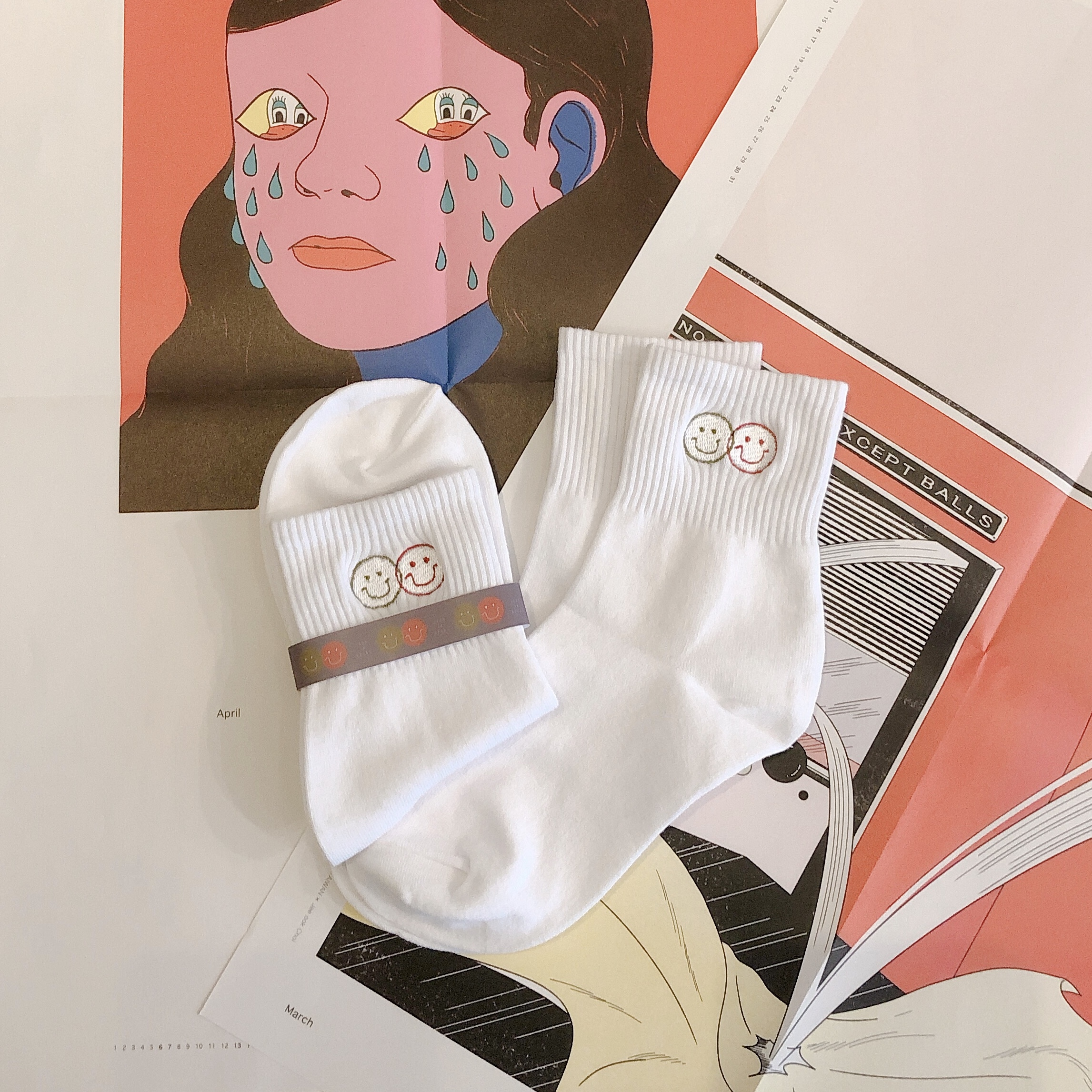zoom in goods 「Happy together 刺繡白色短襪」